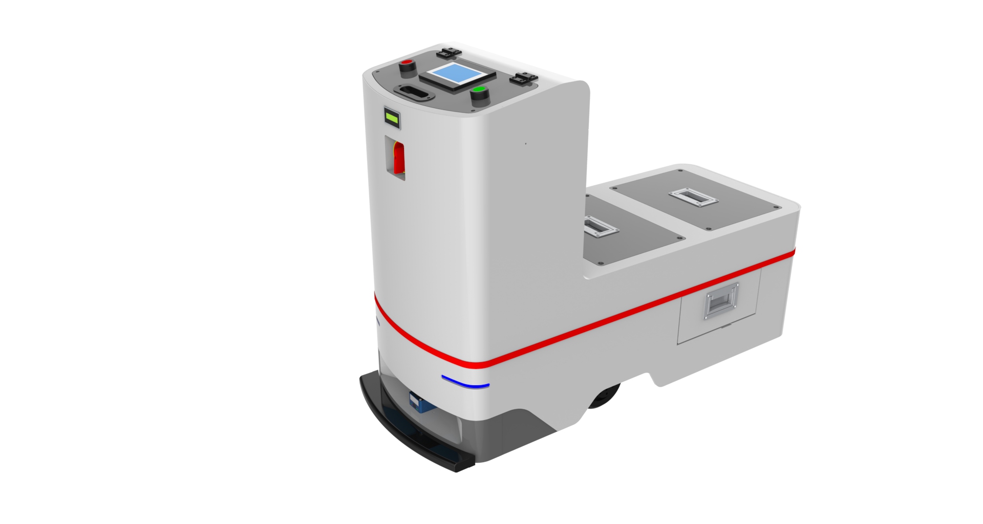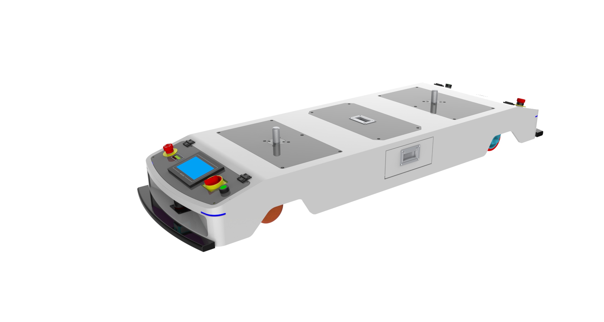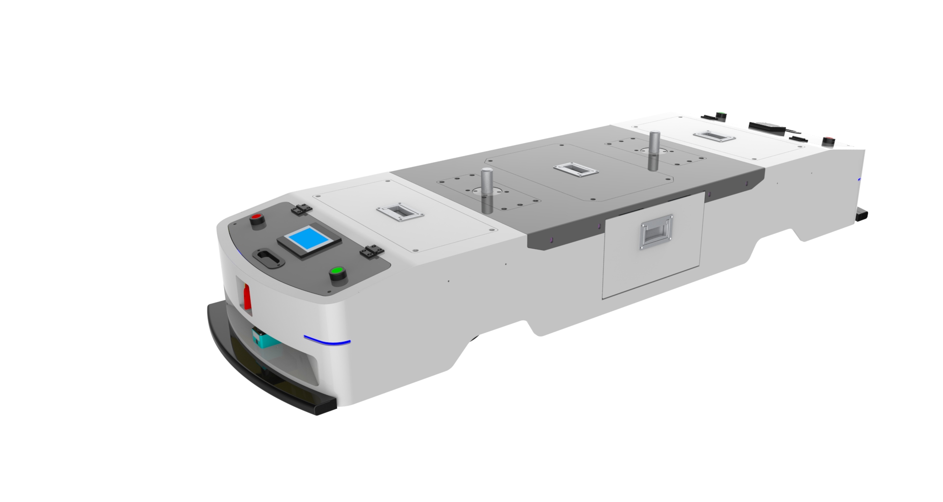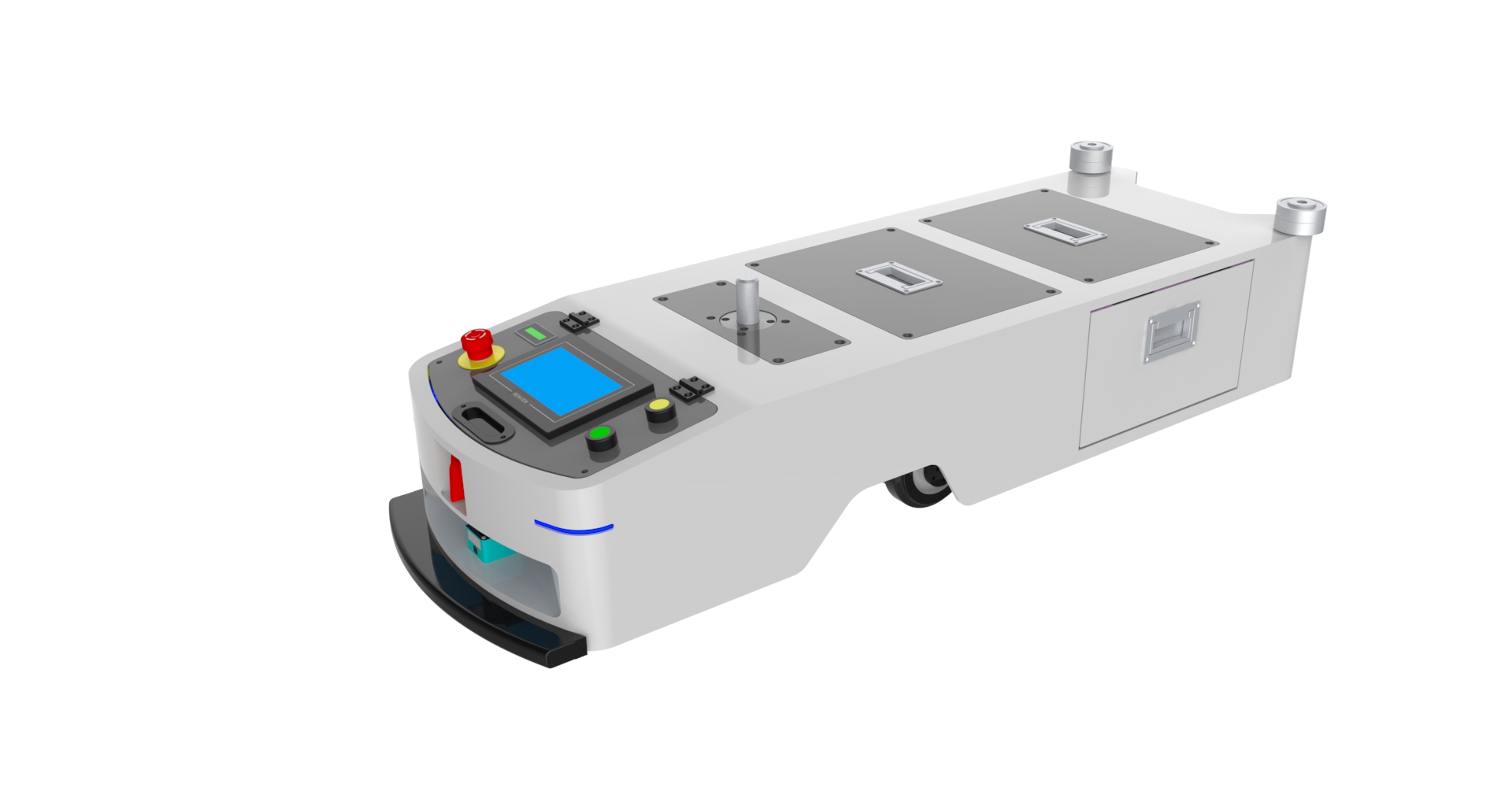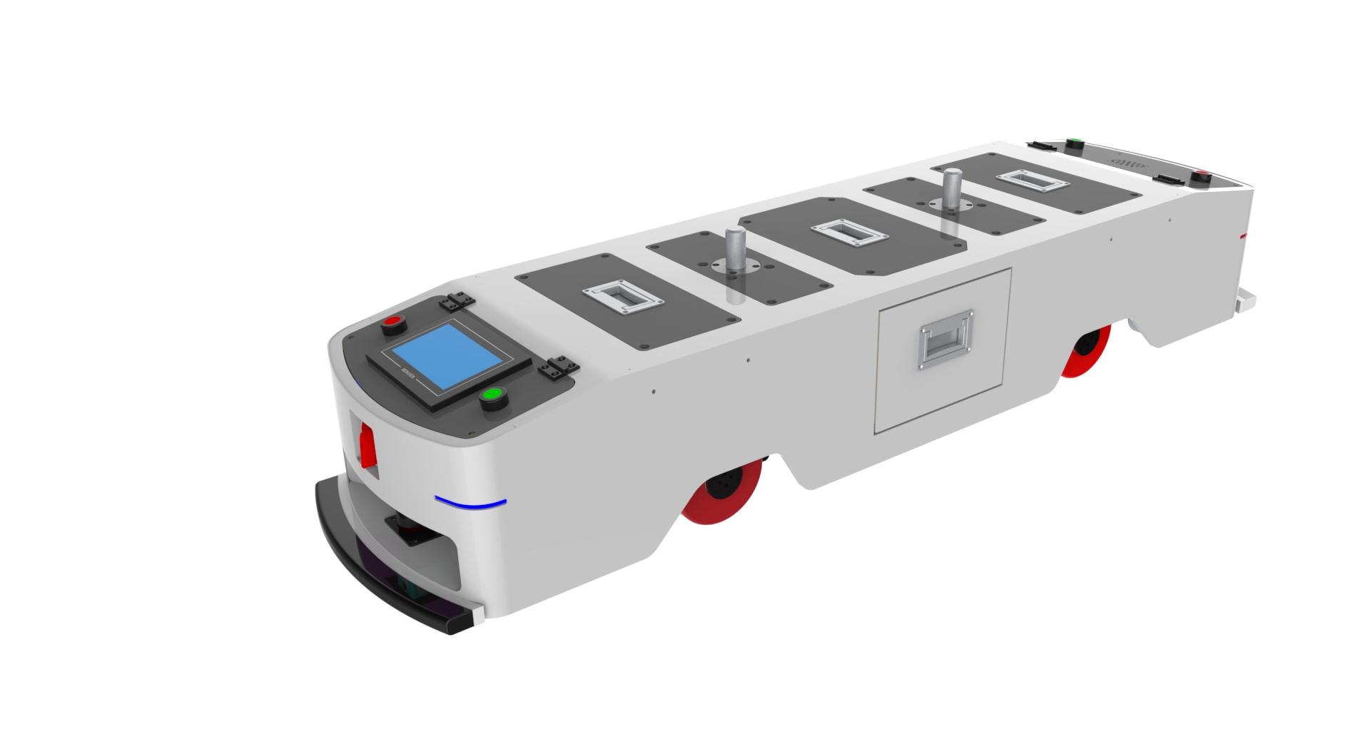 Any hardware can be customized, AMR can be modified 1.Magnetic strip navigation, two-way automatic linear operation, maximum traction load 100Kg, operating speed 0~40m/min, size: L1000mm*W600mm*H300mm (or customized) 2.Can realize forward, accelerate, decelerate, turn, stop and other actions, multi-station docking, multi-level security protection, manual battery replacement (automatic charging function optional); 3.Super long endurance 8~12 hours, AGV comes with low voltage alarm; 4.Standard with a set of 24V/35Ah maintenance-free lead-acid battery.