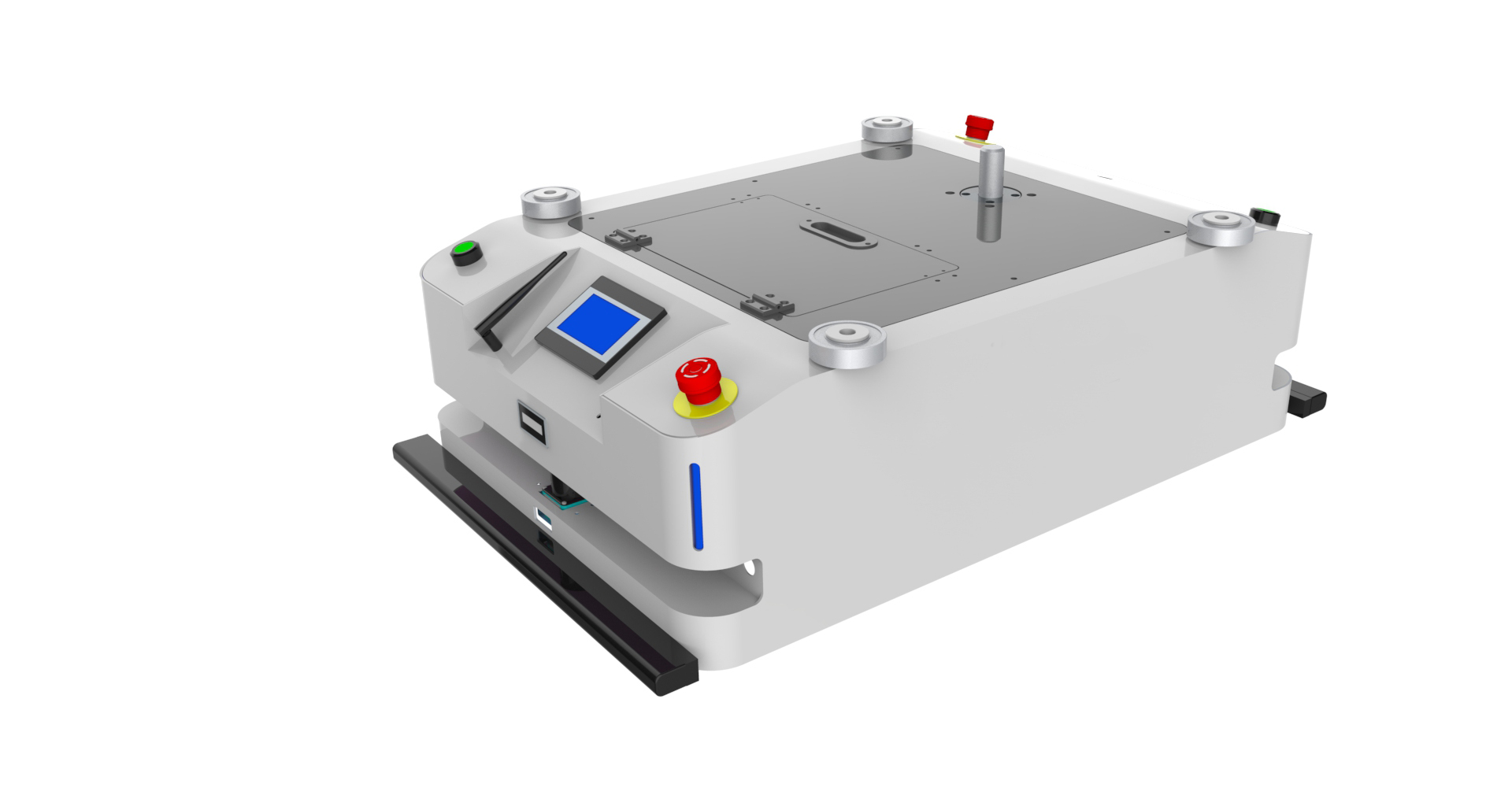 Any hardware can be customized, AMR can be modified 1.Magnetic strip navigation, two-way automatic linear operation, the maximum load 300Kg, running speed 0~40m/min, size: L1000mm*W500mm*H430mm (or customized); 2.Can realize forward, backward, acceleration, deceleration, turn, stop and other actions, multi-station docking, multi-level security protection, manual replacement of the battery (automatic charging function optional); 3.Super long endurance 8~12 hours, AGV comes with low voltage alarm; 4.Standard with a set of 24V/35Ah maintenance-free lead-acid battery.